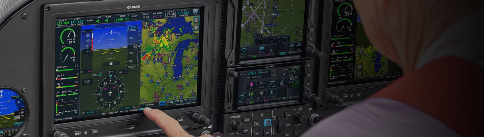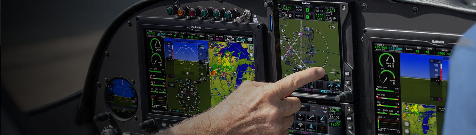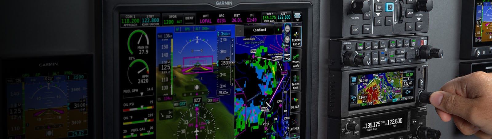 ![]() EASY-TO-READ SCREENS These bright, high-resolution, large-format LCD displays are easy to read and easy to use — so you have a whole new perspective on situational awareness. | ![]() DISPLAY OPTIONS Choose any combination of up to six of the 10.6″ and 7″ landscape or 7″ portrait displays — or install one display now, and scale up your panel as your needs change. | ![]() TOUCH AND KNOB CONTROL Access display functions easily with either touchscreen inputs or the dual concentric knobs — so you can effectively navigate your G3X™ system, even in turbulence. |