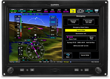 ![]() EASY ACTIVATION The Smart Glide system can be activated with the press of an optional dedicated panel button or through your PFD, with a shortcut to integrated emergency checklists (if configured). | ![]() RECOMMENDS AN AIRPORT Considering the aircraft’s estimated glide range (including terrain and obstacles), the system recommends a suitable airport for landing and offers a list of alternatives, or it advises if no airport is estimated to be within glide range. | ![]() DIRECT-TO ROUTING If an airport is available, the G3X Touch display creates a Direct-to route to the selected airport. And if you’re equipped with a Garmin autopilot, the system will engage navigation and airspeed modes to fly the aircraft near the selected airport. |